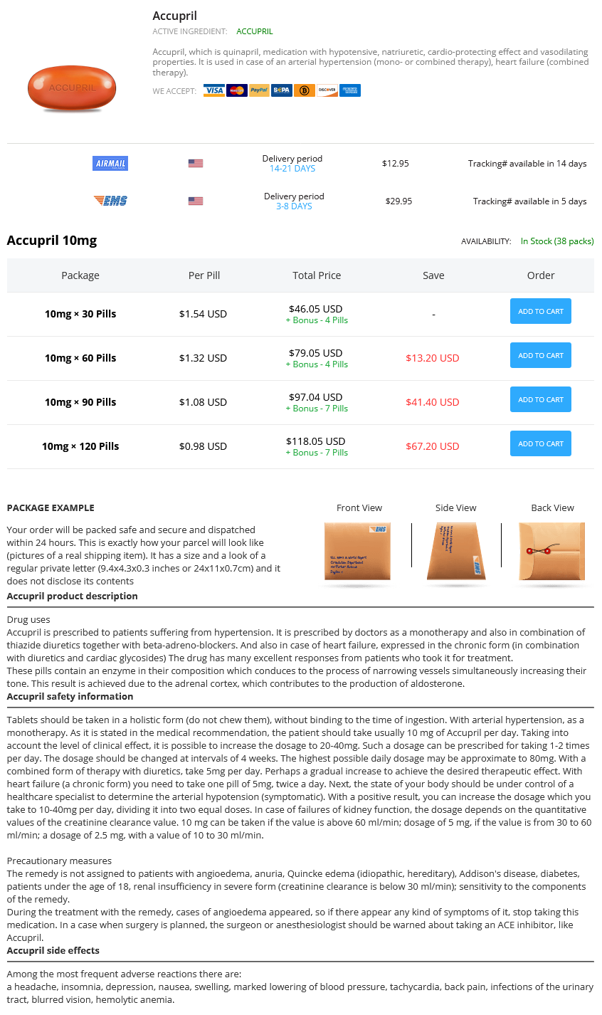 Accupril packs: 30 pills, 60 pills, 90 pills, 120 pills
