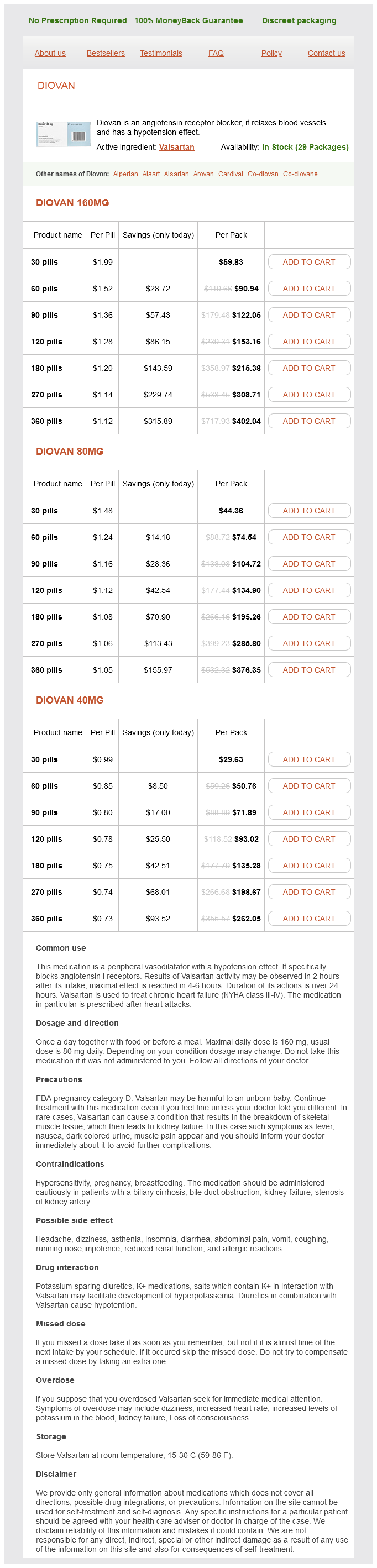 Valsartan dosages: 160 mg, 80 mg, 40 mg