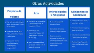 Les ofrecemos a nuestros/as estudiantes, salidas didácticas, exámenes internacionales, charlas con profesionales invitados, visitas guiadas a los distintos puntos de Buenos Aires, participación en actos institucionales, concert, feria de ciencias y buen clima de estudio diario. |